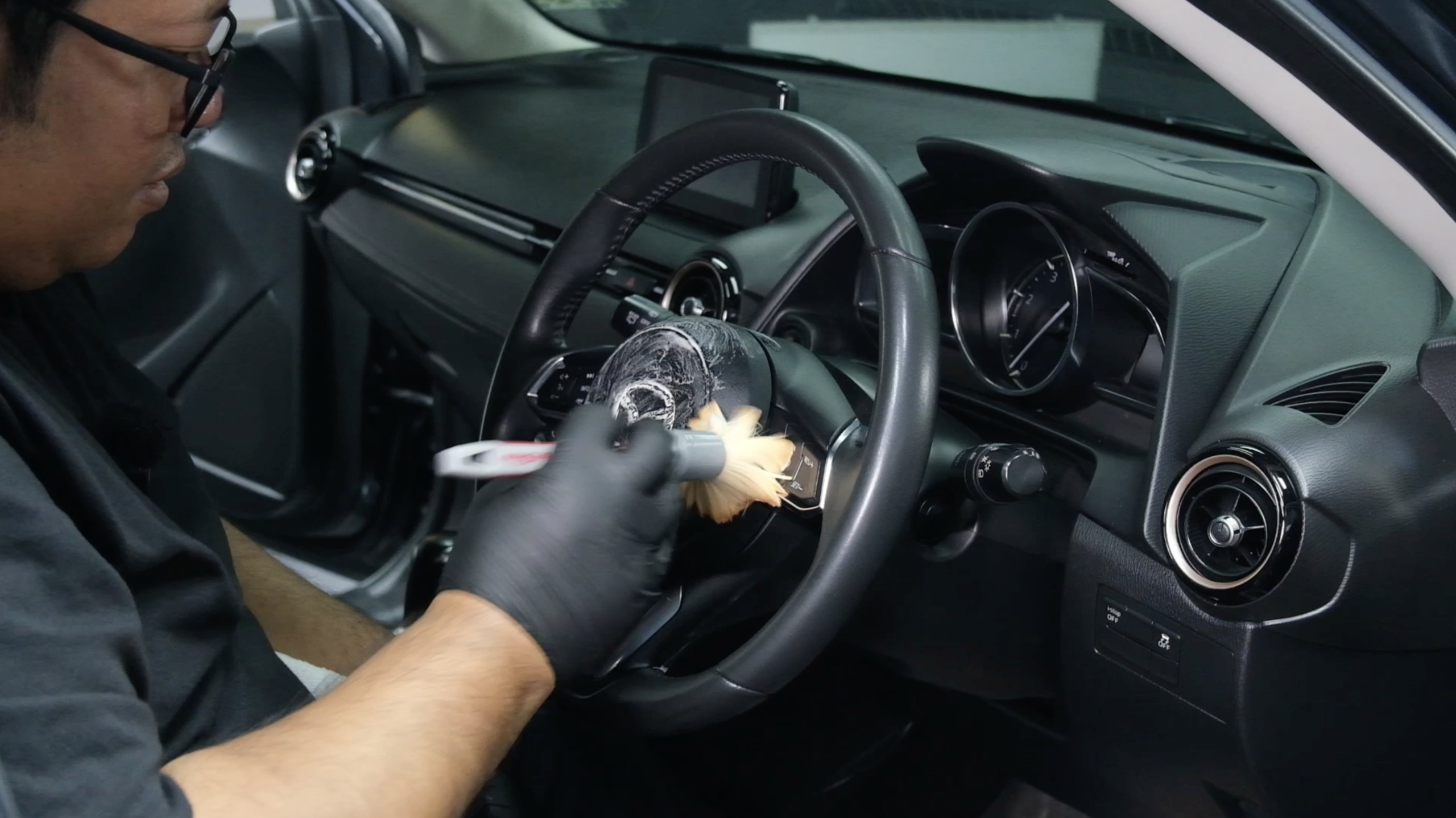 ที่ O2CARS เราเลือกใช้ผลิตภัณฑ์แบรนด์ดัง Gyeon ซึ่งเป็นแบรนด์ผลิตภัณฑ์ดูแลรถยนต์ระดับโลกที่นักดีเทลลิ่งนิยมใช้ โดยพิจารณาจากประเภทของหนัง ซึ่งปัจจุบัน หนังที่ใช้สำหรับทำเบาะรถยนต์มีหลากหลายประเภท หนังแท้, หนังเทียม, หนังวีแกน, หนังกลับ, หนังอนิลีน ฯ โดยช่างจะเลือกผลิตภัณฑ์ทำความสะอาดที่สามารถขจัดคราบออกได้อย่างมีประสิทธิภาพแต่ปลอดภัยต่อหนังในแต่ละประเภท